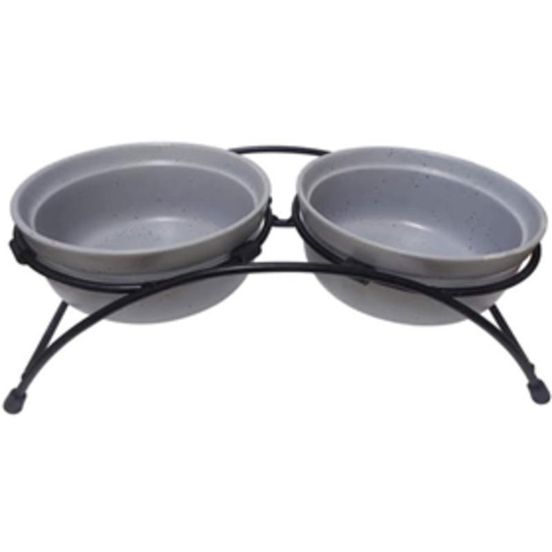 Indipets Pawsome Pottery Stoneware Slate Pet Feeder 10 oz