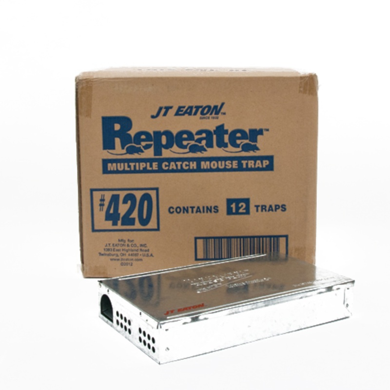 TheJ.T. Eaton Repeater Multiple Catch Mouse Trapis durable, economical, and easy to use. It can be used with glue boards or simply by itself for catch-and-release situations. Its sturdy galvanized construction is tough enough for professionals.Brand:J.T. E