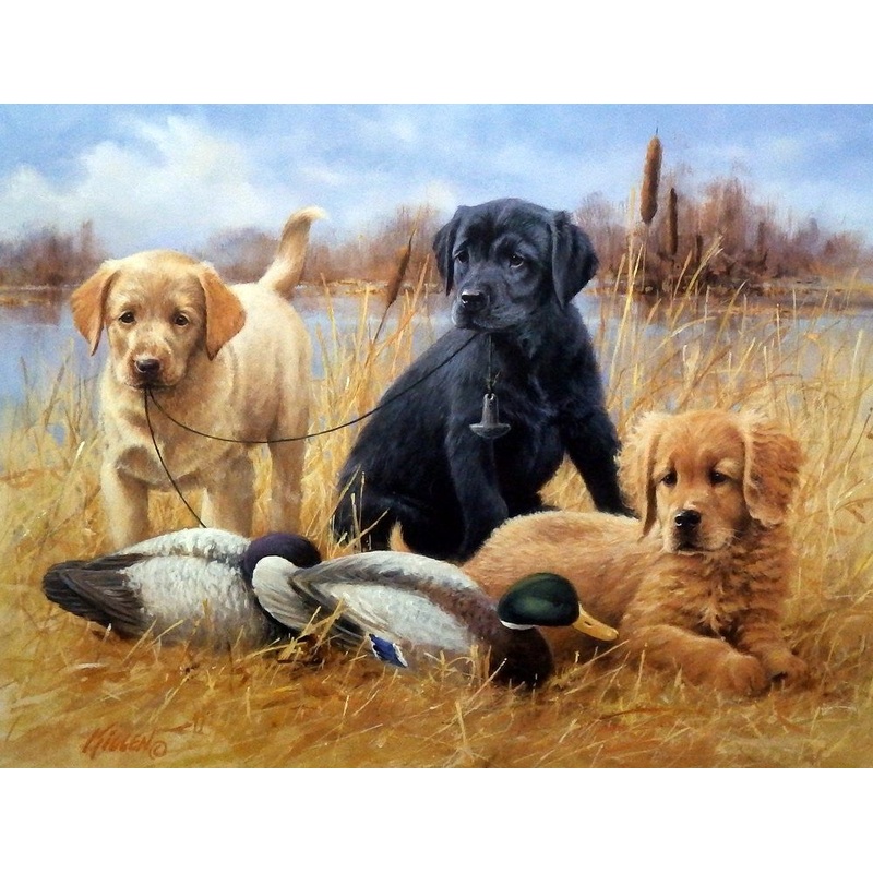 Black and Yellow Lab and Golden Retriever PuppiesImage Size 20.5 x 16Open Edition