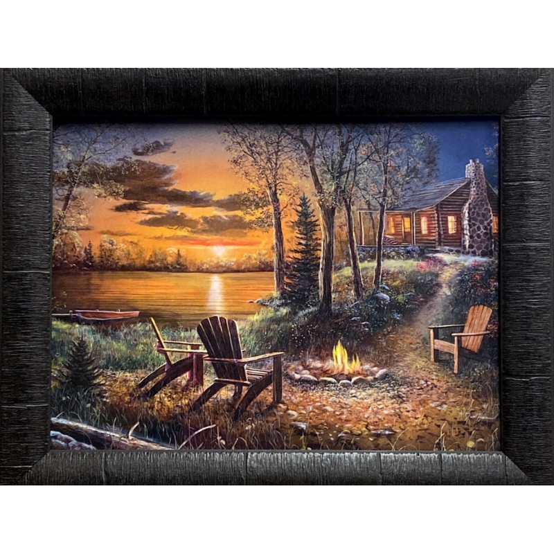 Jim Hansel Fireside Cabin Lake Art Print-Framed 19 x 15