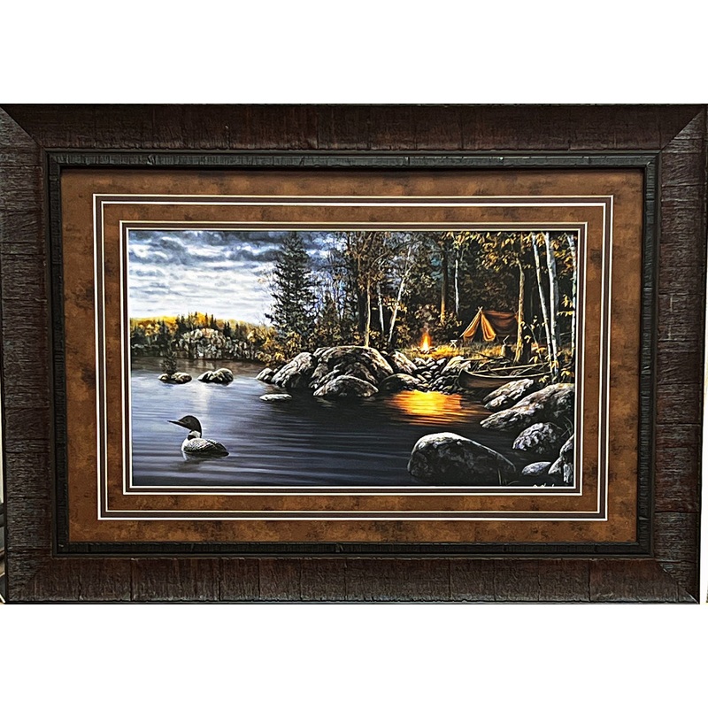 Be the first to review “Jim Hansel Northern Solitude Camping Loon Tent Campfire Art Print-Framed 27.5 x 19.5”