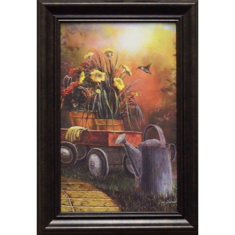 Hummingbird the old water can and flowers make this the perfect summer dayPrint is framed and Hand Textured without glass to give it the look and feel of a CanvasFramed Size 10.25 x 14.5