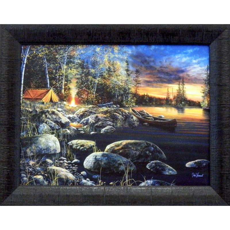 This is one of Hansels most popular prints, Fishing and camping in the solitude of the great outdoors. The campfire iscrackling as the campers prepare for the nights rest.