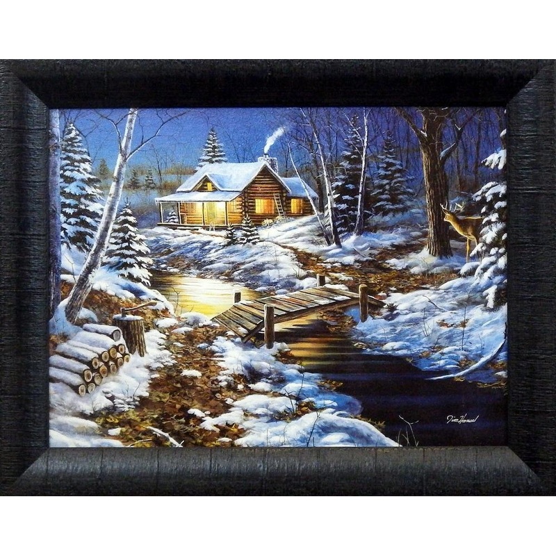 Jim Hansel Woodland Retreat Cabin Winter Stream Art Print-Framed