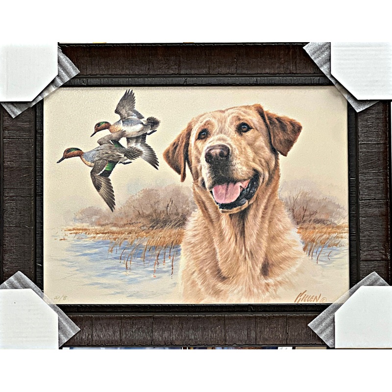 Jim Killen In The Marsh Yellow Lab with Duck Hunting art print-Framed 22.5 x 17.5