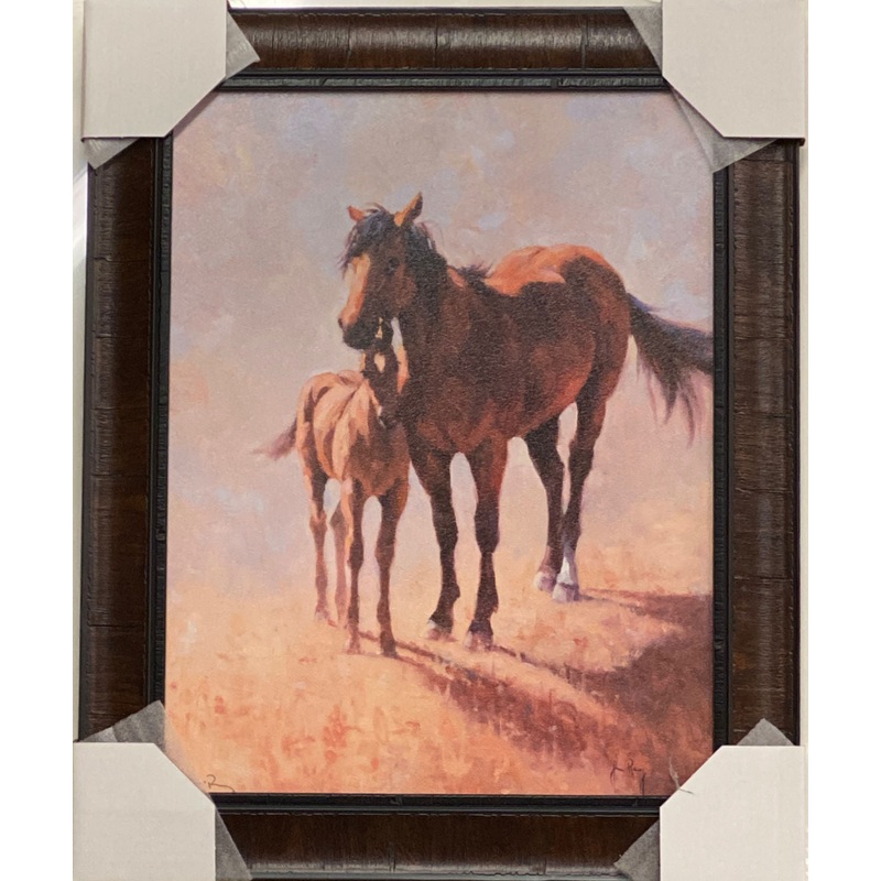 Jim Rey Mustang Mama Horse and Colt Art Print-Framed 22 x 18