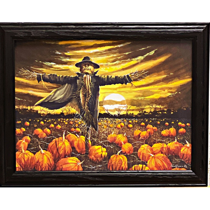 John Rossini Spooky Scarecrow Art Print Arise! Great Pumpkin-Framed 18.5 x 14.5