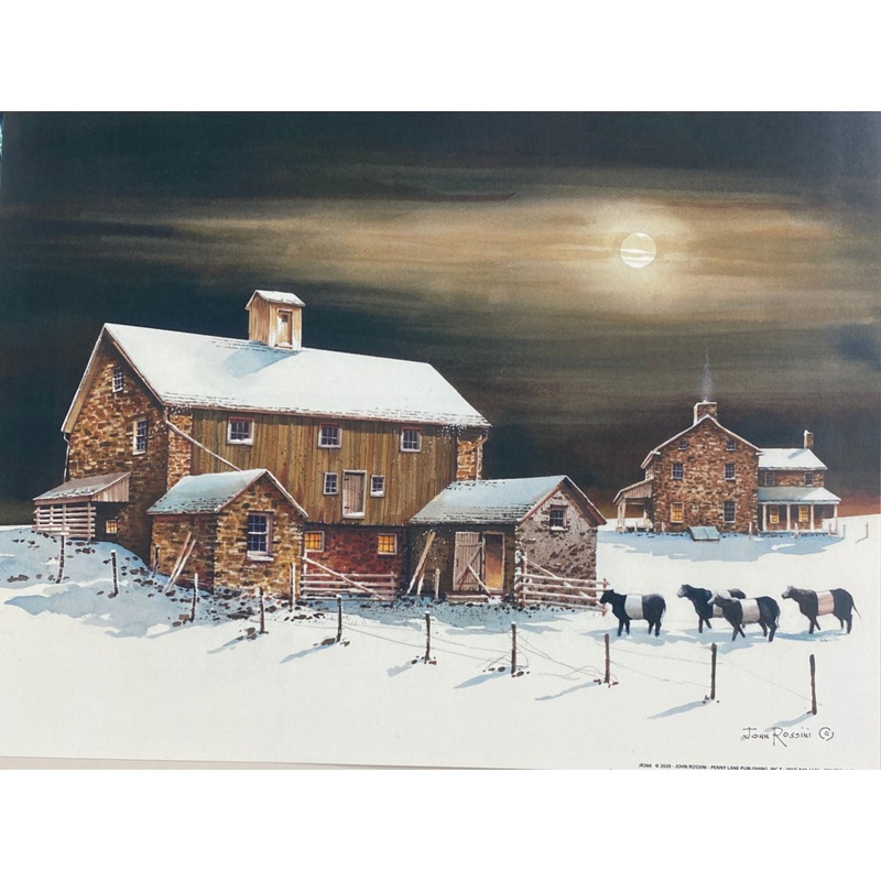 John Rossini Wolf Moon Farm Cow Moon Art Print 16 x 12