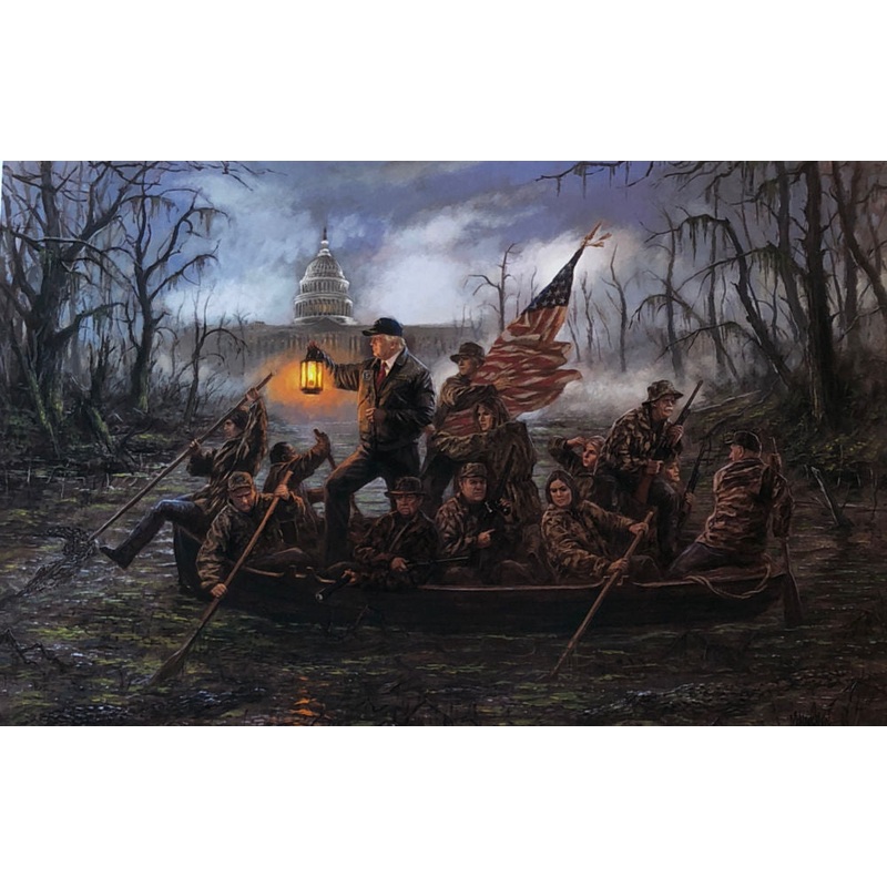 Donald Trump and company are crossing the swamp Look who has come along for the rideImage Size 24 x 16Hand Signed by Artist