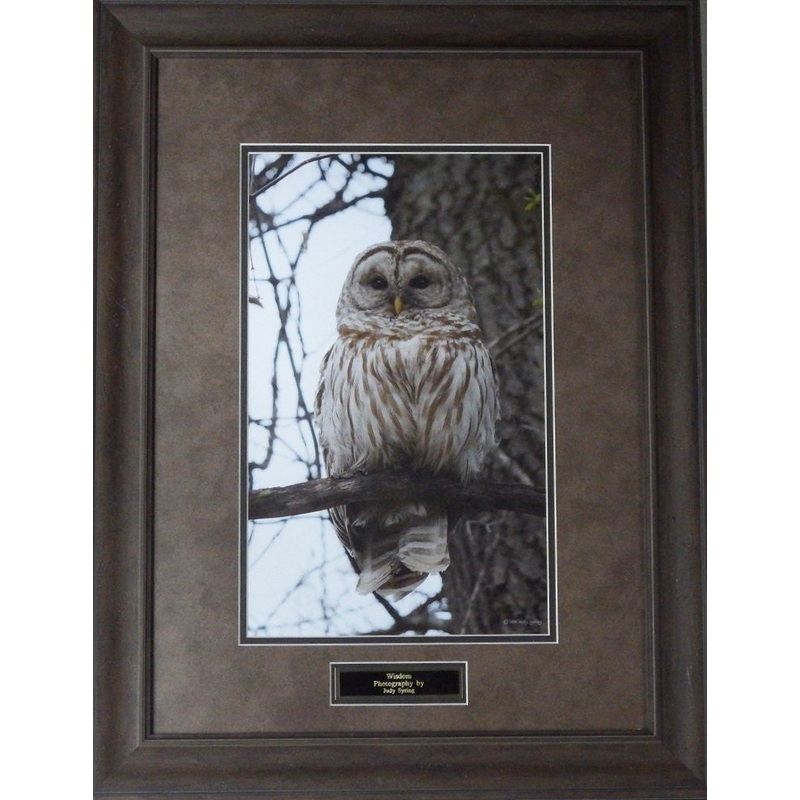 Judy has gone far and wide to find just the right setting In this shot she has captured the Owlin a piece she calls wisdomFramed Size 20" x 26"