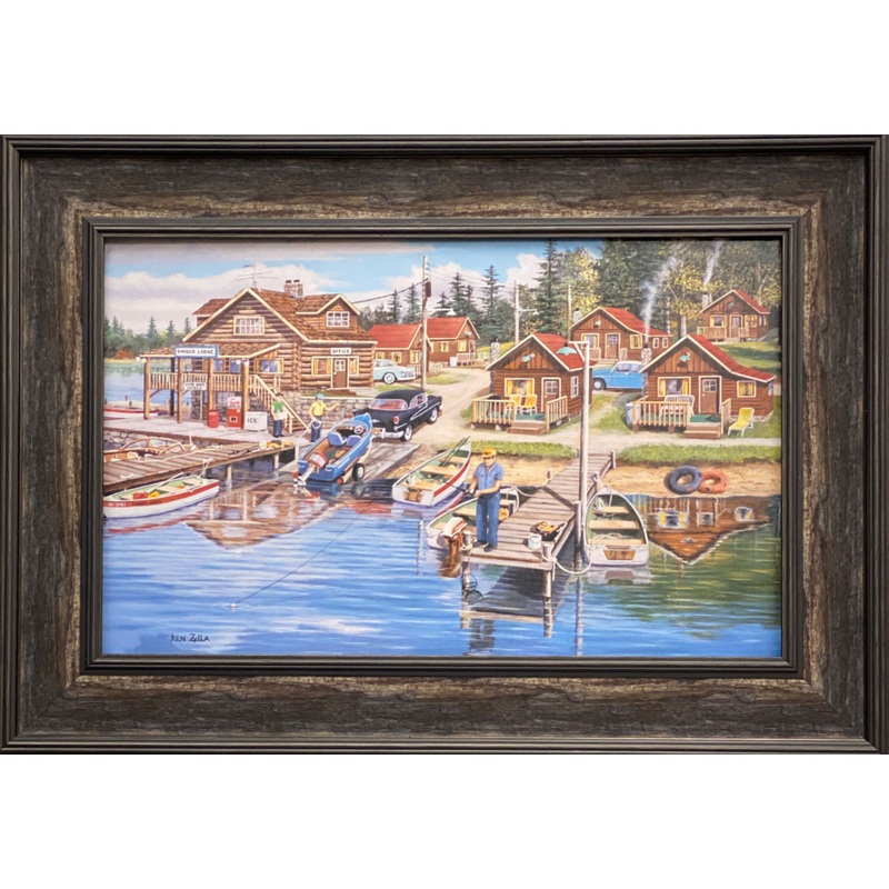 Ken Zylla Timber Lodge Cabin Lake Nostalgic Print-Framed 27.25 x 19.25