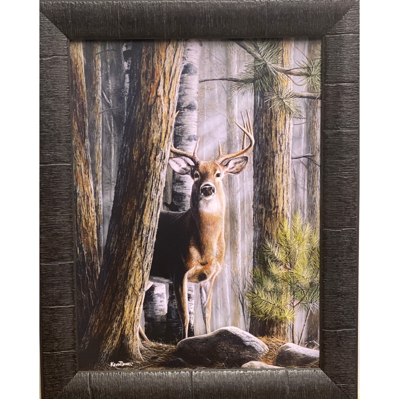 A Big Buck in the woods is the center of this Kevin Daniel Print