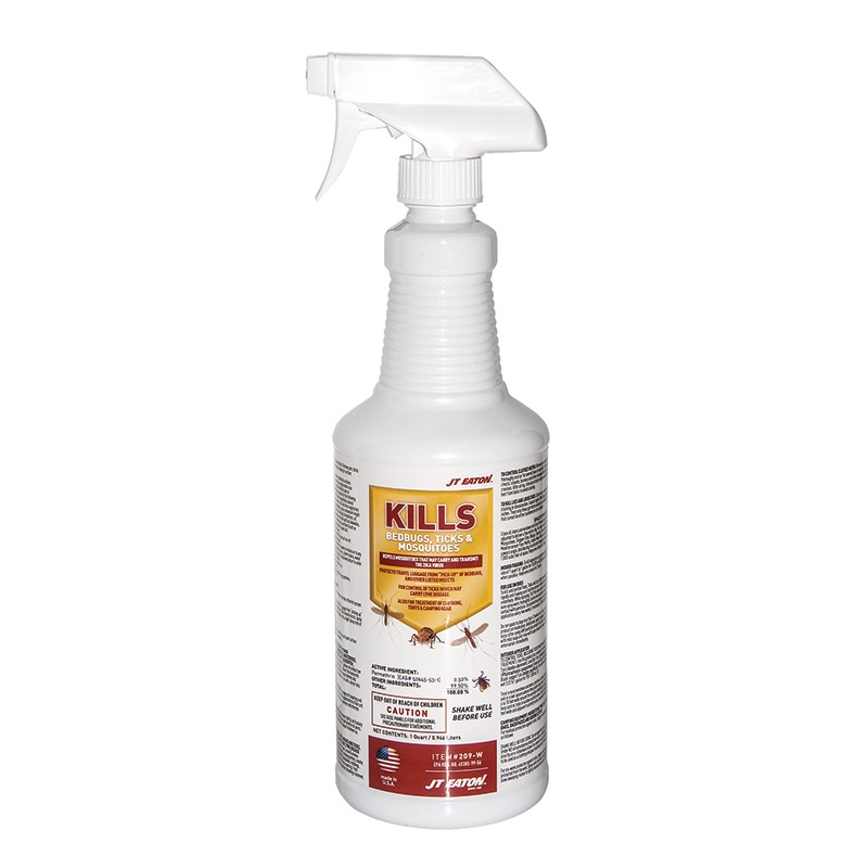 Free ShippingKills Bedbugs, Ticks and Mosquitoes Spray, Water Base (Quart)Water-based pyrethrin spray repels and kills bedbugs, ticks, mosquitoes, and many other labeled pestsApply to mattresses, tents, clothing, mosquito netting, backpacks, sleeping bags,