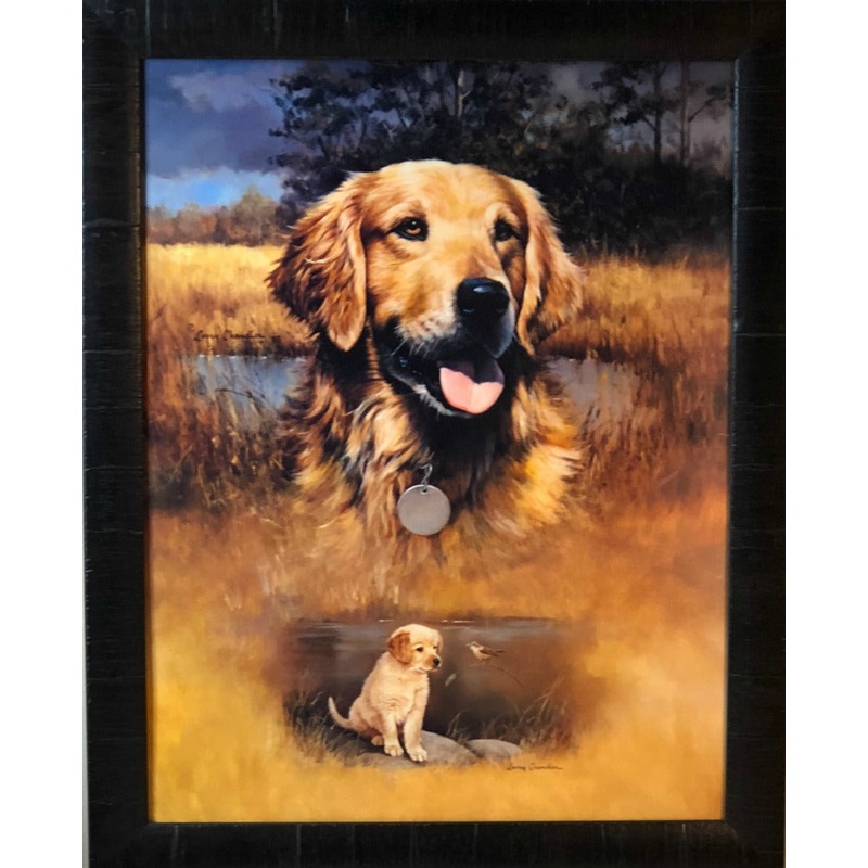 Larry Chandler Golden Retriever with Pup Art Print-Framed