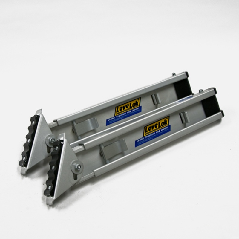 The Levelok LadderLeveling System is easy to use and enables most fiberglass, aluminum, or wood ladders to adapt to nearly any indoor or outdoor situation - from stairwells to uneven terrain. The unique, patented design can be operated with the touch of a
