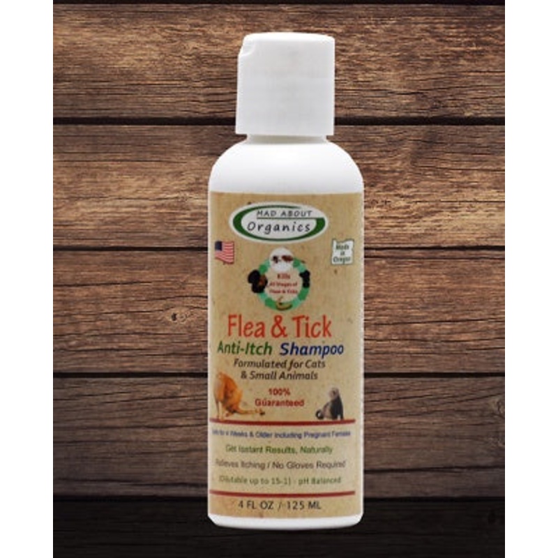 - Mad About Organics Natural Flea and Tick Repellent Shampoo formulated for cats and small animals is designed to get the job done