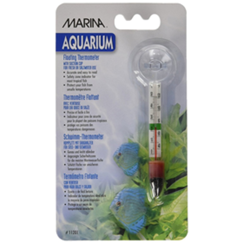 With water temperature being such a critical factor for the well-being of fish, its important to have a good thermometer. This Marina Floating Thermometer is designed to float in the water in a vertical position. It comes with a suction cup for optional installation on your aquarium glass. Accurate and easy to read, it provides temperature readings in Centigrade and Fahrenheit. It also has a safety zone temperature range indicator for most tropical fish. For fresh or saltwater aquariums.