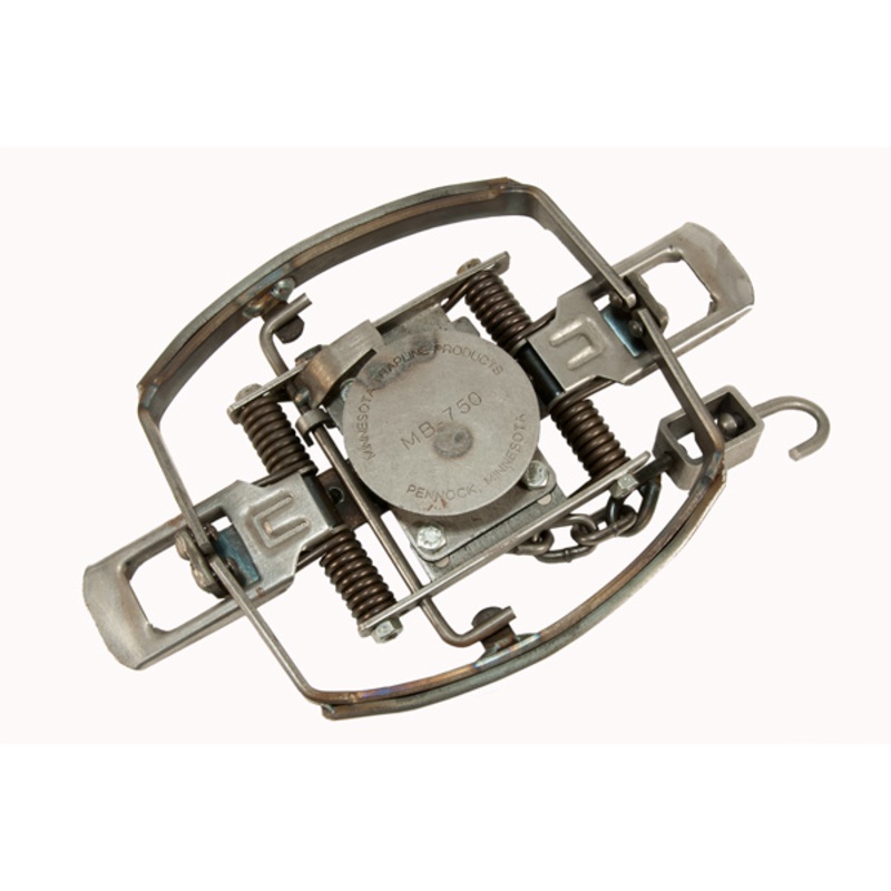 The MB 750 Alaskan with 1/4″ Off-set jaws is a coilspring trap that will stand up to abuse by either wolf or cougar that you can actually afford to buy. The MB-750 “Wolf” has the same heavy frame and jaws as the MB-750 Beaver plus heavy music wire springs and an extra heavy duty wolf swivel coming off the D-ring base plate. Offset 1/4″jaws with 3/16″ (thick) x 1/2″ (wide) flat lamination strips are standard equipment. SINGLE TRAP