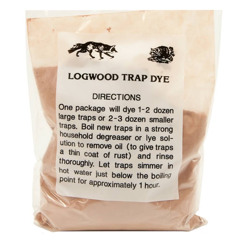 Natural Logwood Trap Dye in a pulverized form. This material is a fine red powder that has very little odor. When dissolved in water you get a solution that dyes steel blue-black. One pound will do approx. 25 - 30 traps or approximately one bag to every 5