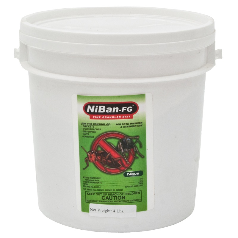 NiBan-FG Fine Granular Baitis a ready-to-use, weather/moisture resistant bait that controls and killsAnts, Cockroaches, Crickets, Earwigs and Silverfish. Do not contaminate this product with other pesticides. Do not apply directly to food.