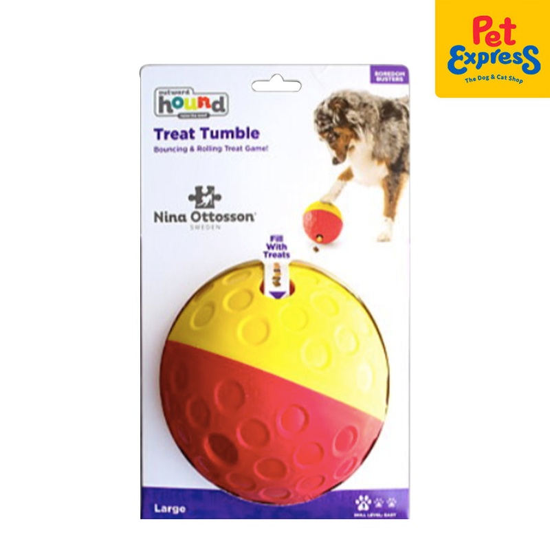 Treat feeding fun. The Nina Ottosson Small Treat Tumble is great for treating and training your dog. Simply fill this treat ball with your dogs favorite treats. Give the ball to your dog to watch them play with the puzzle as they figure out how to release