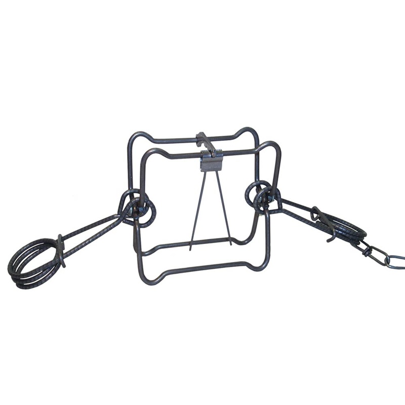 Oneida Victor #120-2 bodygrip trap, 4.5″ x 4.5″, double spring. Good for use on mink, muskrat, small woodchuck, and even fisher. They can be adapted for use in small raccoon boxes on the ground or attached to the side of a tree.