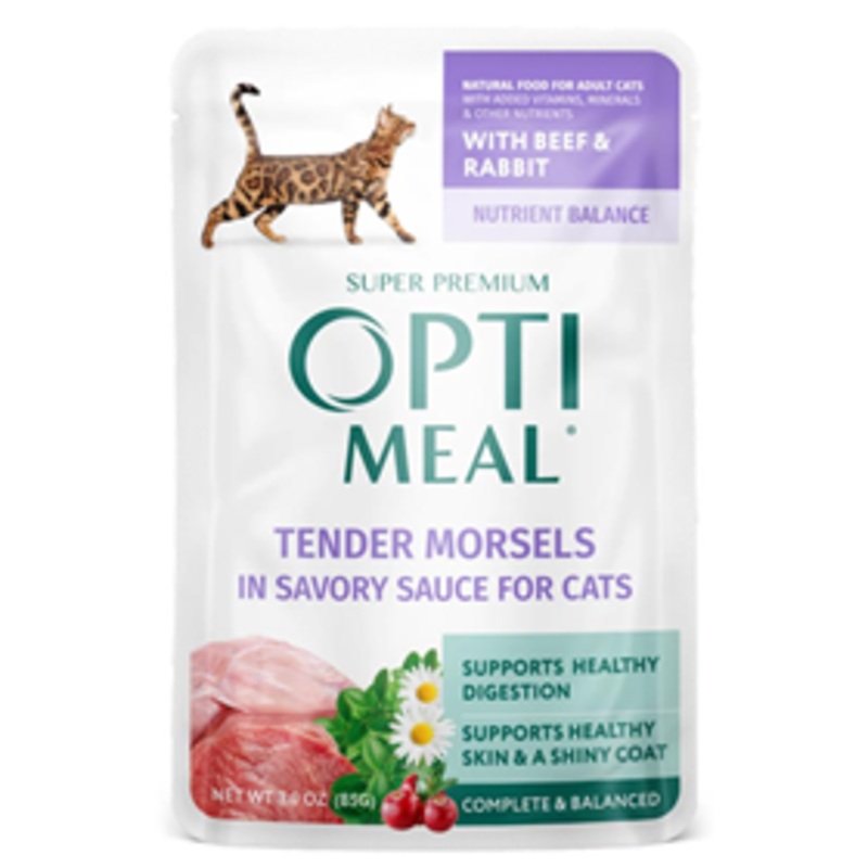 Optimeal Beef & Rabbit Tendor Morsels in Savory Sauce Wet Cat Food, 3-oz pouch