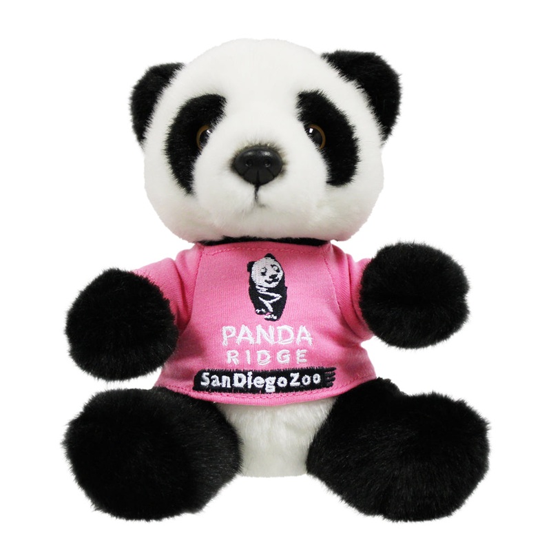 This black-and-white bundle of cuteness is sporting its very own Panda Ridge San Diego Zoo t-shirt! Our Panda Ridge logo is embroidered in black and white on a pink short-sleeved tee. Panda plush measures approximately 7" tall.FEATURESA black-and-white bun