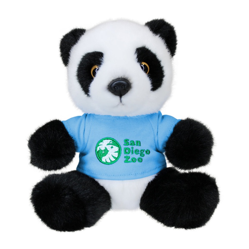 This exclusive black and white bundle of cuteness is sporting its very own San Diego Zoo t-shirt! Our logo is embroidered in green and white on a blue short-sleeved tee. Panda plush measures approximately 8 inches tall.FEATURESAn exclusive black and white