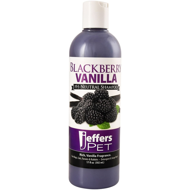 Blackberry Vanilla Shampoo Blackberry Vanilla pH-Neutral Shampoo is a gentle, soap- and detergent-free formula designed to cleanse while maintaining the natural balance of your pets skin and coat. This richly scented shampoo features a blackberry tint with