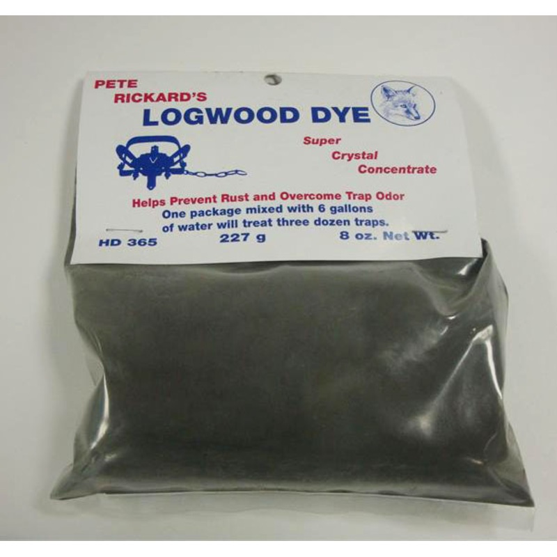 Pete Rickard's Super Crystal Concentrate Logwood Dye 8 oz, BlackLogwood Dye helps prevent rust and overcomes trap odors which can deter animals from your trap. One package of Pete Rickard's logwood trap dye will treat three dozen traps.Directions:New Traps