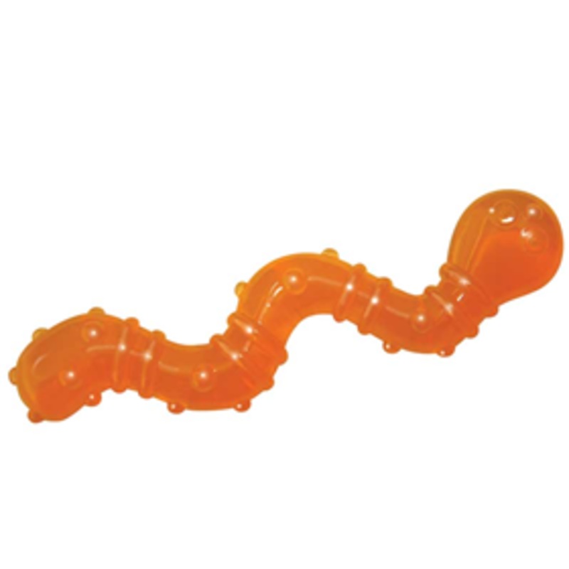 Infused with catnip, the Wiggle Worm’s textured surface provides immediate chew appeal. Bumps massage the gums promoting dental health and the floppy shape is fun to carry. 6.5 in.