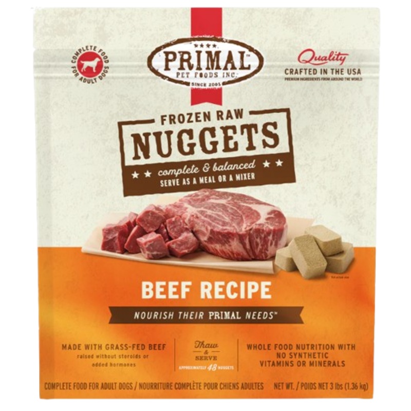 Primal Frozen Raw Nuggets for Dogs, Beef, 3lbs