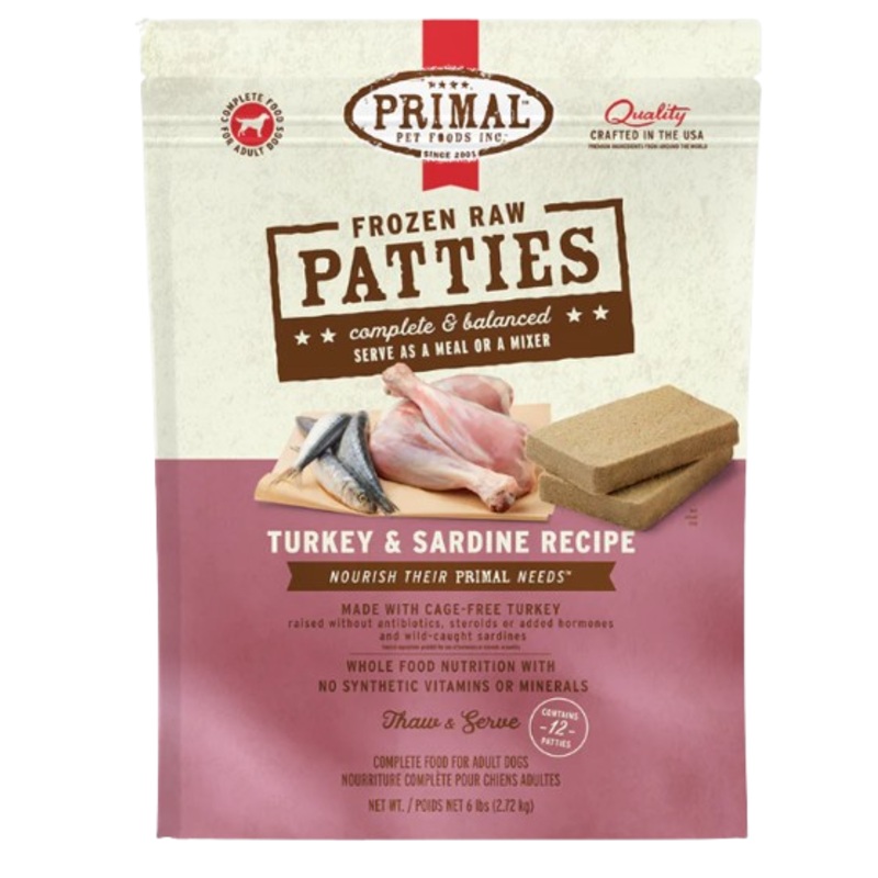 Primal Frozen Raw Patties for Dogs, Turkey & Sardines, 6lbs