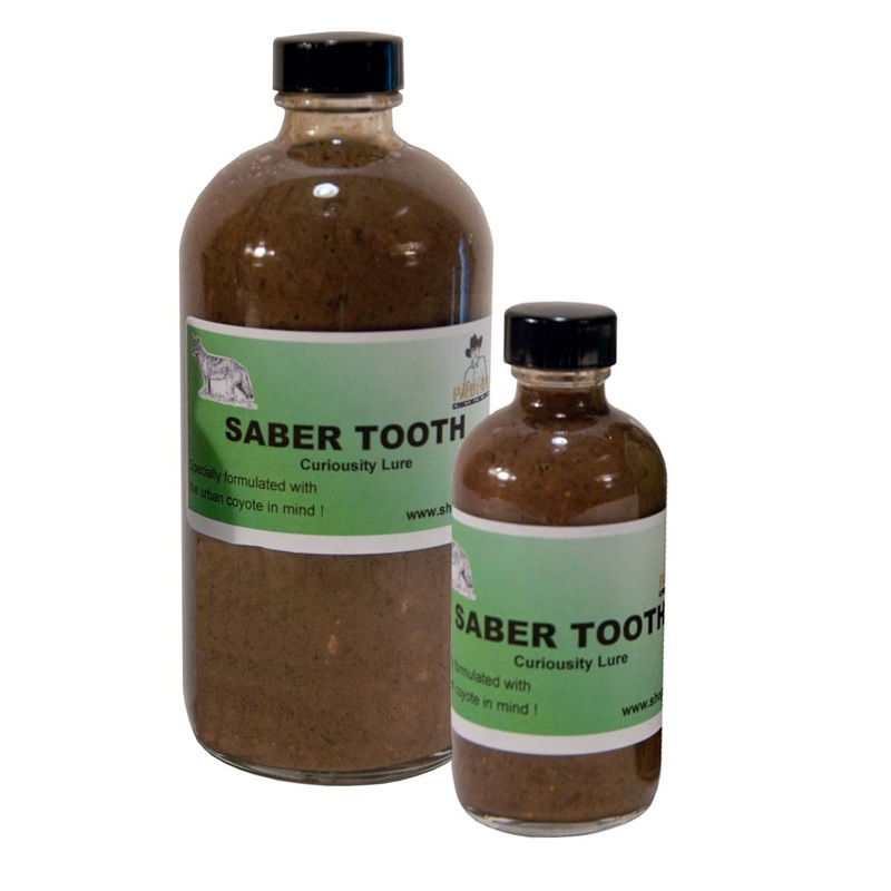 Saber Tooth Canine Lurewas formulated with the Urban coyote in mind and has an extra curiosity ingredient that is very attractive to all coyotes. Use as a curiosity lure for ALL canines.Use in any standard dirthole set for Fox, Coyote, and it has even proven itself on Bobcat.A favorite set with this lure is a small mouse vertical hole with a well blended trap up close to the hole. Saber Tooth coyote lure is a member of the ProLine family of lures, formulated by Gary Jepson, owned by Tim Julien.