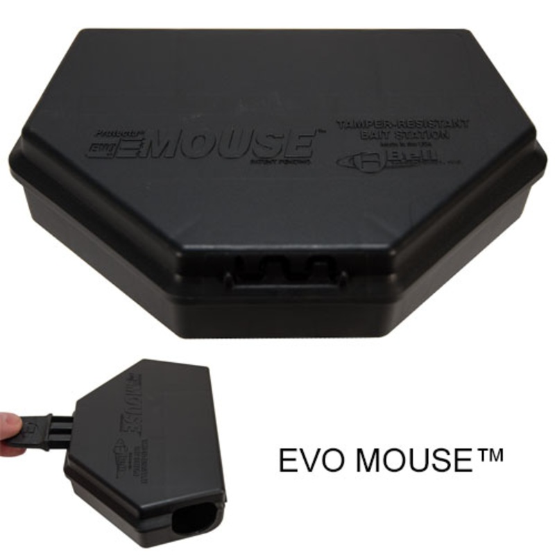 Protecta Evo Mouse Bait Station is much like Bell Lab's RTU bait station but holds twice as many blox baits. It also has a single key for quick entry and servicing. Place these mouse bait stations along runways, around the perimeter, in doorways, under pal