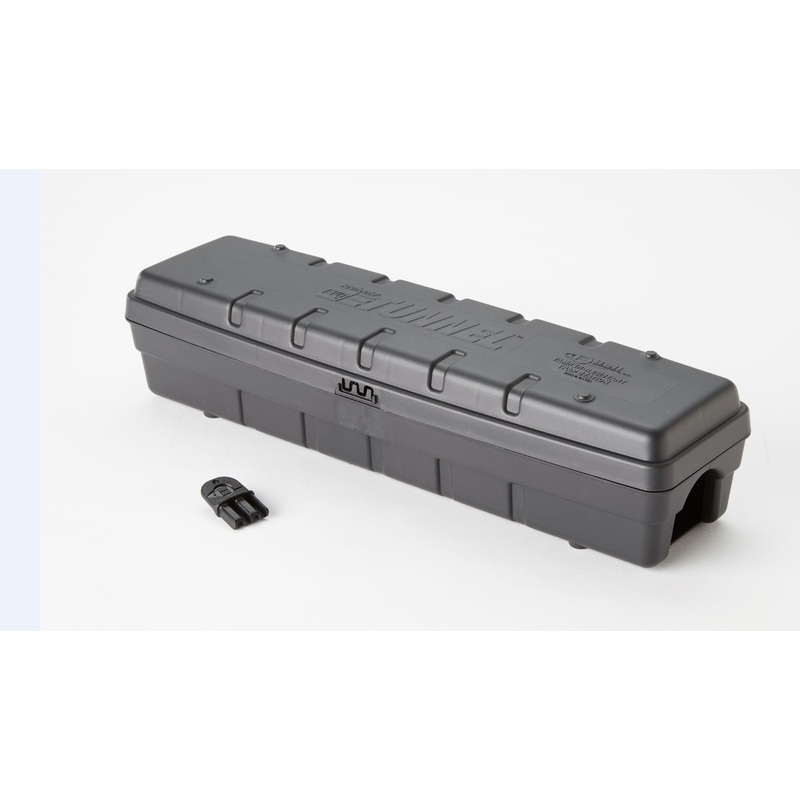PROTECTA EVO TUNNEL accommodates two TRAPPER T-REX rat snap traps, two TRAPPER T-REX iQ rat snap traps, which are secured into the EVO TUNNEL base. The EVO TUNNEL also can also provide cover for mouse-sized products such as two Mini-Rex mouse snap traps, two TRAPPER Mouse glue trays or two TRAPPER MAX glue boards. PROTECTA EVO TUNNEL opens and locks quickly with Bells EVO key, and EVO TUNNEL stations are stackable for easy handling.