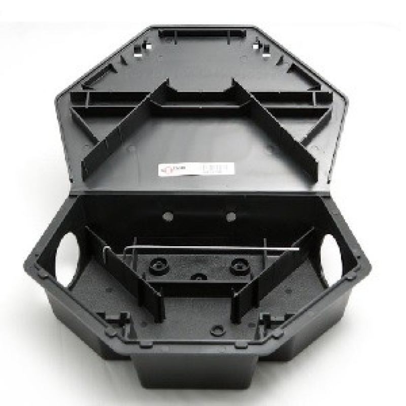 Patented interior baffles lead rodents directly to the feeding receptacle in PROTECTA LP which can hold Bell’s BLOX and Super-Size BLOX baits, tracking powders, liquid baits, cereal baits and place pacs. BLOX fit on horizontal and vertical bait securing rods that help keep bait securely in the station.
