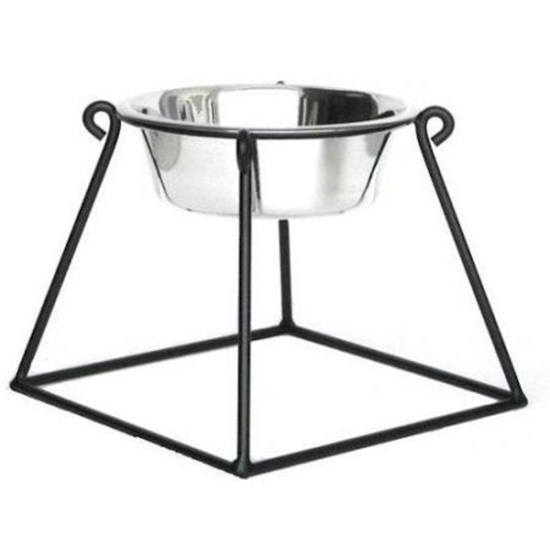 Features: Size: 10"L; x; 10"W; x; 7"H 2 Quart Capacity Includes durable wrought iron stand Sturdy Construction Stainless steel bowl Rounded sides keep food and water centered Large bowl opening enable easy refilling Detachable bowls for easy cleaning No sh