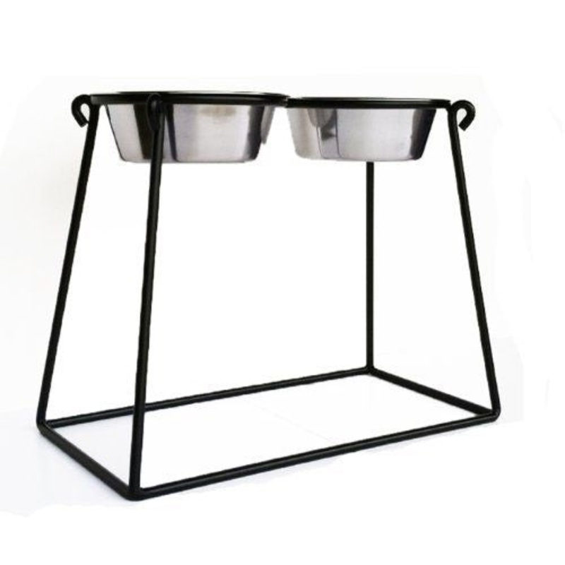 Features:Size: 22" L x 10" W x 12" H3 Quart CapacityIncludes durable wrought iron standSturdy ConstructionStainless steel bowlsRounded sides keep food and water centeredLarge bowl opening enable easy refillingDetachable bowls for easy cleaningNo sharp edge