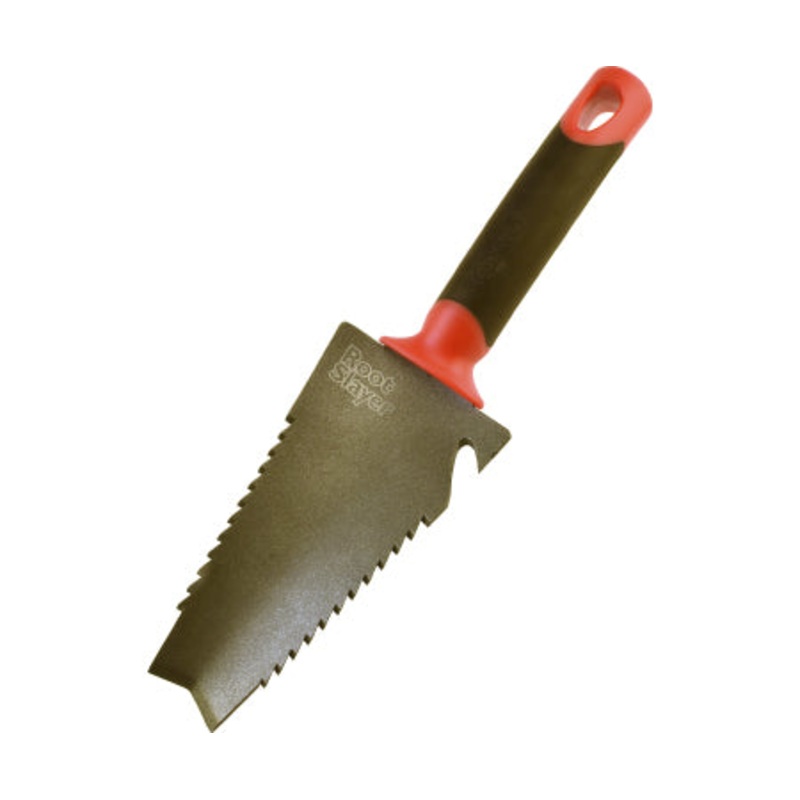 Featuring a flared handle for extra comfort with the adapted Root Slayer Shovel as a trowel, added twine cutter notch that doubles as a bottle opener and a durable nylon holster to carry it in. The trowel works like a dream, not only for gardening, but als