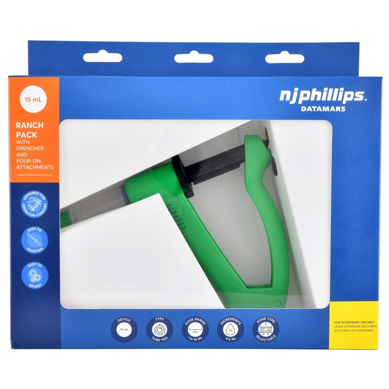 Ranch Pack Syringe and AccessoriesAn adjustable syringe with a Dial-a-Dose system with settings from 1 mL up to 15 mL (0.5 mL increments). Can be used for drench, pour-on or injection. For use with Cattle, Swine, Sheep or Goats. Each applicator comes with