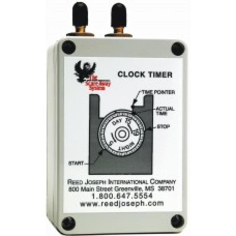 Our battery operated Clock Timer does a superb job of activating and deactivating the M8, M4, AND M3Scare-Away LP Gas Cannon automatically. It operates for an entire season on a single AA battery.Tired of turning your cannon on every morning and turning it