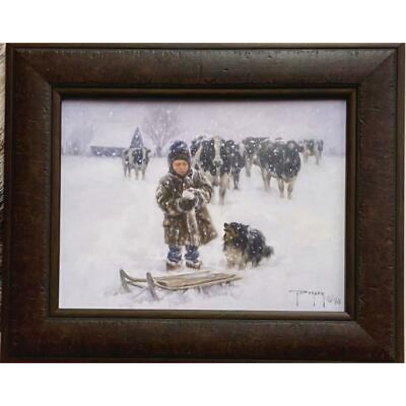 Robert Duncan Good Snow Cows Farm Boy Art Print-Framed 21.5 x 17.5