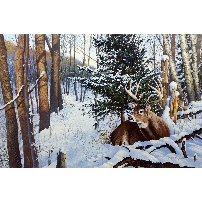 Robert Schmidt has done a fantastic buck print. MIRRORED IMAGE shows this lone deer nesting in the woods taking in what is left of the sun for the day.New PrintImage size is 29" x 19"Ships in Art TubePublished in 1994We guarantee every art purchase you mak
