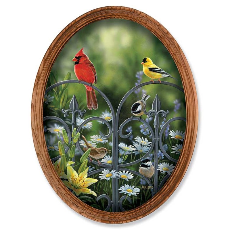 The birds are all together enjoying the warm summer DayFramed Size 15"W x 19"H