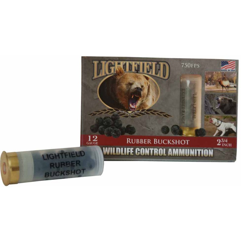 This Rubber Buckshot 21-Ball Slug is the “traditional” averse conditioning round, improved to carry a larger payload. There are 21 .32 caliber PVC balls moving at 750 fps. This load is designed for close to intermediate encounters with large game such as Bear, Moose, Elk or Deer. The 21 pellets spread into a large pattern to impart a painful stimuli over a large area with little risk of injury. Rubber Buckshot 21-Ball is a high velocity, low recoil load intended for close range use. The rubber projectiles can cause serious injury or death, but greatly reduce the potential to over penetrate or injure others in the home. Use only in firearms chambered for this gauge/caliber and that are in good working condition.