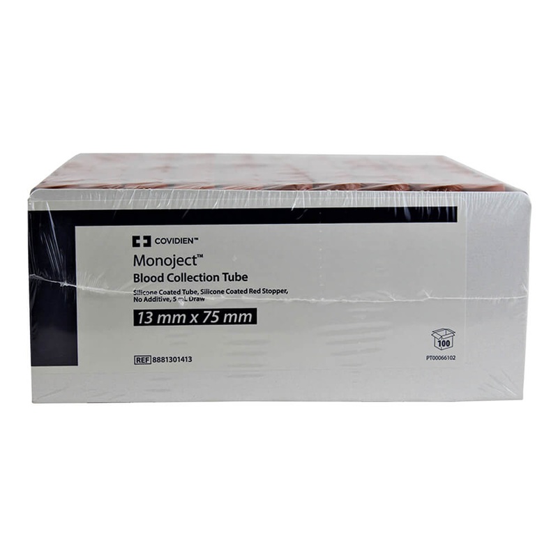 Rx Monoject Blood Collection Tubes, 5 mL, 100 ctMonoject Blood Collection Tubes are designed for laboratory procedures that require serum collection. These 5 mL tubes feature a silicone-coated interior and a glycerine-coated red stopper, ensuring smooth bl