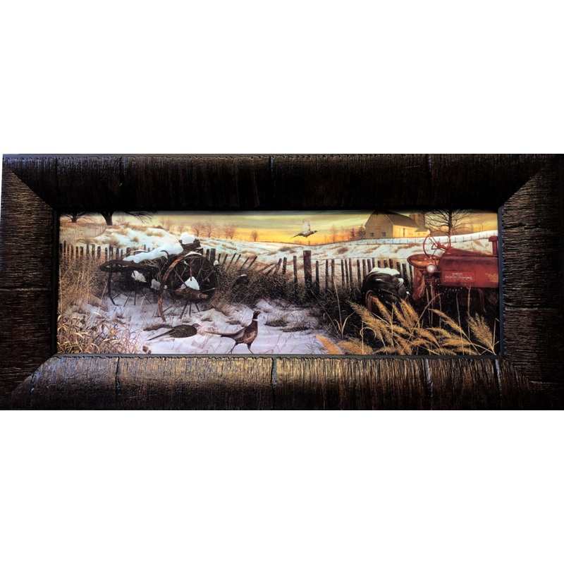 S Trom Winter Awakening Pheasant Tractor Farm Art Print Framed 17.5 x 8