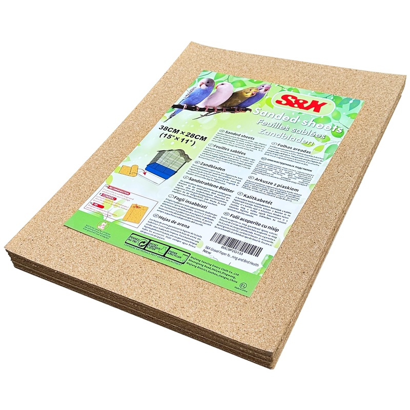 Our S&X gravel paper is your answer to a clean, hygienic bird cage that is easy to maintain.This 30-packed package of 38.1 x 27.9 cm sand leaves are immediately ready for use and make the caulk cleaning into child's play.The coarse -grained surface serves